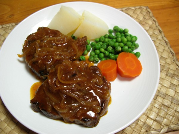 4 Lamb chump chops (can use 4-quarter or neck chops to equal amount), 3 large brown onions chopped, 1 teaspoon of raw sugar, 1/2 cup tomato sauce, 2 teaspoons vinegar.
